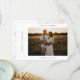 Express your gratitude with our Modern Script Photo Wedding Thank You Card W Note. This chic and elegant card captures the warmth and charm of your special day, featuring a modern boho design with handwritten calligraphy. The minimalist layout and black and white aesthetic bring a timeless elegance, perfect for couples who appreciate classy simplicity. Ideal for any wedding, this double-sided card allows you to showcase a beautiful photo from your big day, making your thank you as memorable as the day itself. Whether for a trendy or luxury wedding, this card is a stylish way to say "thank you.”