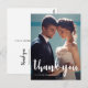 Elegant and modern script wedding thank you photo postcard with thank you message and return address on the back of the card. .