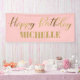 Elegant blush pink and gold "Happy birthday" party banner customised with the name of the guest of honour.