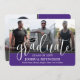 Share the joy of a high school or college graduation with custom 4 photo collage purple and white announcements. The pictures and all wording on this template are simple to personalise with any details of your choice, such as party invitation info, parents' names, special honours, degree title, favourite inspirational quote, graduate's contact info, or plans for the future. All colours can be customised with the Zazzle design tool. (IMAGE PLACEMENT TIP: An easy way to centre a photo exactly how you want is to crop it before uploading to the Zazzle website.) The purple, white and black stripe design features modern script calligraphy with a mortar board cap, elegant classic serif typography, and four photos of your choice, such as senior pictures or images from the commencement ceremony. Available as both printed and downloadable digital announcements, these modern graduation cards are a stylish way to share a special day celebration with family and friends. Congratulations to the graduate!