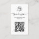 Modern minimalist script and QR code in black and white business order thank you. Add your social media. With an elegant signature script font, all the colours are editable , add your logo. 5 star review for your customers.