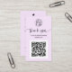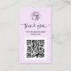 Modern minimalist script and QR code in black and pastel lavender purple business order thank you. Add your social media. With an elegant signature script font, all the colours are editable , add your logo. 5 star review for your customers.