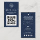 Modern minimalist script and QR code in navy blue business order thank you. Add your social media. With an elegant signature script font, all the colours are editable , add your logo. 5 star review for your customers.
