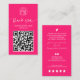 Modern minimalist script and QR code in hot neon pink business order thank you. Add your social media. With an elegant signature script font, all the colours are editable , add your logo. 5 star review for your customers.