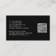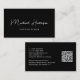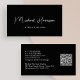 Professional modern black business card with your name in a stylish white script and your title and contact information (such as email, telephone numbers, firm name and mailing address) in clean, simple white typography. Add your website's URL address to create a scannable QR code linked to your website, social media profile, or any other platform that showcases your work, making it easy for others to explore your expertise.