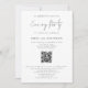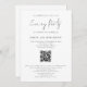 Modern Script QR Code Wedding Evening Party. Available digitally and printed. Add your QR code to your wedding website so your guests can RSVP and see all the details online without the need for separate enclosures. An informal set typography in black for Evening Party complementing the rest of the text which you can easily personalise.