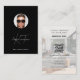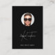 A beautiful black modern script monogram photo business card design with QR code. A simple and professional way to introduce your business. Social media handle included in the design of this business card for you to use. Personalise your details to create your own unique business card.