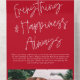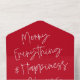 This fun holiday photo card design features a classic white and red background with a modern calligraphy script greeting and one horizontal photo. The greeting says "Merry Everything & Happiness Always". On the outside of the card is your return address and another personalised greeting. When the photo is torn away as a keepsake the recipient will also have your greeting on the back of the photo portion. As you can see there is need to order envelopes!!