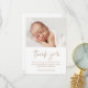 This modern photo baby baptism thank you card features hand lettered calligraphy script thank you art that is moveable and that you can easily change the colour of, a horizontal photo and editable text. Click the edit button to customise this design.
