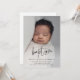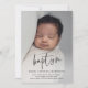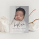 This Modern Script Baby Photo Baptism invitation features a beautiful full bleed vertical photo and hand lettered baptism art and minimal editable text. Click the edit button to customise this design.