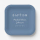 Modern Script Religious Cross Blue Boy Baptism Paper Plate