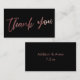 Whether you use this card as a wedding favour tag or replace the name and date fields with a personal message, its sophisticated, modern design is sure to grab the attention of those who receive it. The background is covered in editable black; change this to any colour you prefer. Featuring a modern brushed handwriting graphic overlay reading "thank you", your important message of gratitude is front-and-centre and impossible to miss. Update the back with your personal details using the template fields, or click to customise further and make this design your own. // 100 // Designed by Melody Watson for Paper Muserie.