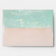 Beautiful turquoise abstract watercolor sparkling ocean wave and hearts in the sand beach background, toped with stylish script and elegant serif font, modern and simple. Great RSVP envelopes for nautical beach wedding, tropical destination wedding, coastal ocean themed wedding in summer.
