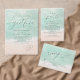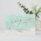 Beautiful turquoise abstract watercolor sparkling ocean wave and hearts in the sand beach background, toped with stylish script and elegant serif font, modern and simple. Great RSVP cards for nautical beach wedding, tropical destination wedding, coastal ocean themed wedding in summer.
