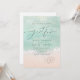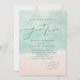 Beautiful turquoise abstract watercolor sparkling ocean wave and hearts in the sand beach background, toped with stylish script and elegant serif font, modern and simple. Great nothing fancy just love wedding invitation for intimate nautical beach wedding, tropical destination wedding, coastal ocean themed wedding in summer.