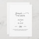 This modern script save the date announcement card is perfect for a minimalist wedding. The simple black and white design features unique industrial lettering typography with modern boho style. Customisable in any colour. Keep the design minimal and elegant, as is, or personalise it by adding your own graphics and artwork.