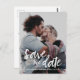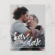 Personalise this classic and chic Save the Date photo postcard design with your own vertical engagement photo, names, wedding date and location. Modern script typography for the words "Save the date"