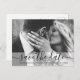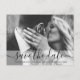 This postcard allows you to customise it with a photo of you and your partner, creating a unique and intimate glimpse into your love story. The modern script typography adds a contemporary and stylish touch, ensuring that your announcement stands out.