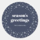 Modern Script Seasons Greetings Holiday Navy Blue Classic Round Sticker
