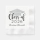 Custom paper graduation napkins feature a modern and elegant personalised design with the graduate's name, their class year in trendy black calligraphy script, and a silver grey coloured grad cap.
