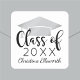Finish grad envelopes with this modern graduation seal featuring a silver cap icon and bold “Class of” script. Personalise the year and name for a polished, coordinated look on announcements, party mail, and thank you notes. Clean black typography on white pairs with any school colours.