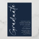 This is a minimalist and modern dark blue graduation announcement card. It is a simple and stylish handwritten script design in classic blue and white with "Graduate" in real silver foil and a photo at the back. Please contact the designer for any queries about this design.