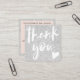 Modern minimalist white, soft pastel blush pink and silver glitter business order thank you brush script font with a heart. Add your social media. With an elegant signature script font, all the colours are editable , add your logo.