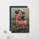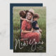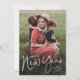 Modern Script Simple Photo New Year Holiday Card with handwritten font and full bleed portrait photo on the front with family name. The back has a second photo with a heartfelt holiday message from the family. Click the edit button to customise this design.