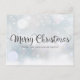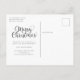 Modern script snowflakes office holiday postcard featuring falling snowflakes on a snowy background with a Christmas greeting set in an elegant black script text. Personalise by adding your company name. You can add a seasonal message on the reverse. Designed by Thisisnotme©
