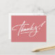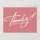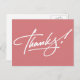 Modern handwritten script Thank You postcards in Strawberry Ice. Perfect for Weddings, Birthdays, Christmas, Showers or any other occasion. Strawberry Ice colour 'Thank You' postcards, if required, choose any other colour or add your own printed text, address or company name from the "Customise It" tab.