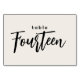 Modern Script Table 14 Fourteen Off-White Wedding or Dinner Party Table Number. Fourteen is written out in a trendy chic hand-lettered font. The background colour of this table number is colour editable, just click the customise further button to select any colour you need. A stylish yet simple design in black and off-white or any background colour you choose. This table number card template makes it fast and easy to create stunning additions to your wedding ceremony and reception décor.