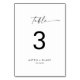 This modern script table number is perfect for a minimalist wedding. The simple black and white design features unique industrial lettering typography with modern boho style. Customisable in any colour. Keep the design minimal and elegant, as is, or personalise it by adding your own graphics and artwork. The card prints on the front and back (double-sided). Items are printed exactly as they appear on your screen when you add to cart, so personalise and add each table number that you need to your cart individually.