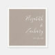 These simple, modern wedding napkins feature white text aligned to the right margin on a taupe background. Add the couple's names in stylish handwriting calligraphy.