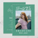 This teal coloured modern minimal graduation party invitation features both script and sans serif typography. This pairing of flowing script and modern sans serif creates a stylish balance, with the script adding sophistication and the sans serif ensuring clarity and readability. Upload your favourite photo.