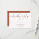 A simple elegant modern minimalist terracotta signature script RSVP card with your details set in chic typography. Designed by Thisisnotme©