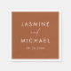 Add a personalised touch to your wedding reception, engagement party, or rehearsal dinner with these personalised modern script wedding napkins. The custom wedding napkins display your names and wedding date in modern lettering with a white handwritten script on a terracotta background. The simple, yet stylish, terracotta wedding napkins are perfect for your modern wedding.