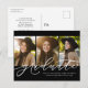 Celebrate your grad and invite guests with this horizontal three-photo graduation announcement and invitation postcard that features an modern and trendy calligraphy script graduate on the front and a customisable back for your party details.