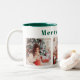 Modern Script Three Photo Green Merry & Bright Two-Tone Coffee Mug
