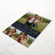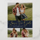 With a three photos and a modern script written "save the date" in foil on a navy blue background, this card is the perfect way to announce your engagement and upcoming wedding to friends and family. The text is bold and modern but still sophisticated. The customisable text on the front has room for names, date, location and other information like a wedding website. The back is a matching navy blue with a white starry speckle. Other colours and styles also available in the collection!