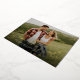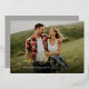 With a single horizontal photo and a modern script written "save the date" in foil, this card is the perfect way to announce your engagement and upcoming wedding to friends and family. The text is bold and modern but still sophisticated. The customisable text on the front has room for names, date, location and other information like a wedding website. The back is a neutral grey and white striped pattern. The colour is editable by clicking "Customise."