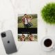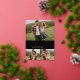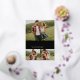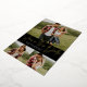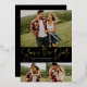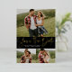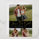 With a three photos and a modern script written "save the date" in foil on a black background, this card is the perfect way to announce your engagement and upcoming wedding to friends and family. The text is bold and modern but still sophisticated. The customisable text on the front has room for names, date, location and other information like a wedding website. The back is a matching black with a white starry speckle. The colour can be changed by clicking "customise further."