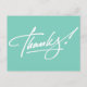 Modern handwritten script Thank You postcards in Turquoise. Perfect for Weddings, Birthdays, Christmas, Showers or any other occasion. Turquoise colour 'Thank You' postcards, if required, choose any other colour or add your own printed text, address or company name from the "Customise It" tab.
