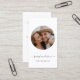Modern and professional photography business cards featuring your photo in a circle alongside trendy minimalist script typography. Add your contact information to the back. Includes three social media icons and a field for your username.