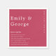Add a personal touch to your wedding reception with these stylish and modern wedding napkins. The vibrant viva magenta background sets the perfect backdrop for the elegant typography and fun facts about the bride and groom. Your guests will love learning about your favourite things, how you met, and other interesting titbits about your relationship. The design is simple and customisable, allowing you to choose the perfect colour to match your wedding theme. These napkins will not only serve a practical purpose, but they will also add a unique and charming touch to your reception. Make your special day even more memorable with these fun and customisable wedding napkins.