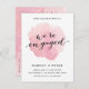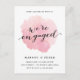 The Watercolor Spotlight engagement party invitation features a soft, painterly blush pink watercolor wash in the centre with contrasting modern black calligraphy inside on an elegant white background.