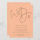 Modern Script We Do QR Code Wedding Peach. Available digitally and printed. Add your QR code to your wedding website on the back makes this a convenient option for your guests to RSVP and see all the details without the need for separate RSVP and details cards. Stylish set script We Do takes centre stage at the top. The rest of the text you can easily personalise. Text and background colours can be changed if you wish to better suit your wedding theme via the customise further option.