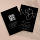 Modern Script We Do QR Code Wedding Black Add your QR code to your wedding website on the back makes this a convenient option for your guests to RSVP and see all the details without the need for separate RSVP and details cards. A white typography on stylish black design. Stylish set script We Do takes centre stage at the top.The rest of the text you can easily personalise. Text and background colours can be changed if you wish to better suit your wedding theme via the customise further option.