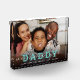 Surprise dad on his birthday or Father's Day with this keepsake glass photo block. This modern design features a landscape photo of your choice, a dark overlay at the bottom with bold text DADDY combined with elegant white script 'we love you' over the top. Customise this product by adding a message, name/s and date as a memory. Perfect keepsake gift for fathers!