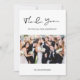 Share four of your favourite wedding photos with these modern script wedding photo collage thank you cards. Add your message, photo and names to the front of card and then add three more photos to the back.