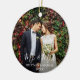 Modern Trendy Script Mr. & Mrs. Wedding Photo Ornament - Front and Back Photos